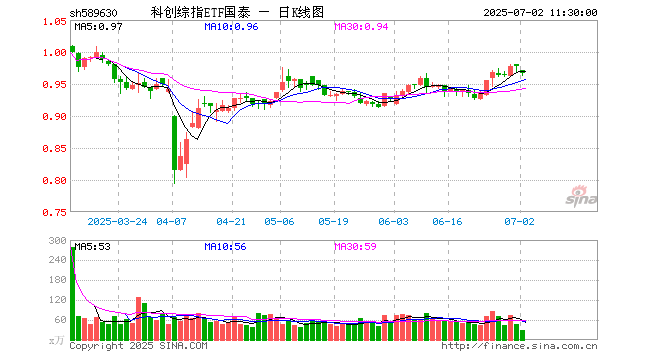 科创综指ETF国泰(589630)业绩比较基准为上证科创板综合指数收益率,管理人为国泰基金管理有限公司,基金经理为麻绎文、刘昉元,成立(2025-03-04)以来回报为-2.24%,近一个月回报为5.46%。
